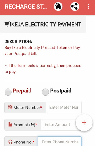 - Pay for Electricity bills in Nigeria (Prepaid and Postpaid)