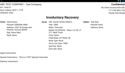 Repo Ninja allows users to create and manage run lists, create asset condition reports, capture photos and signatures, and record and document asset recoveries. All information is recorded directly within the application and updated to the database in the user's system of record in real time.