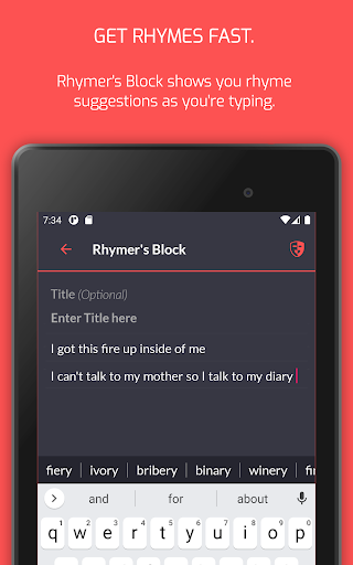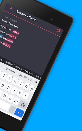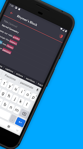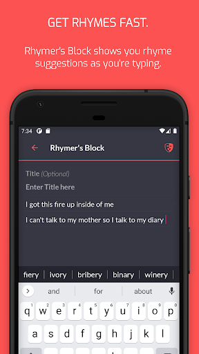 Who has time to search for rhymes? Rhymer’s Block instantly suggests words that rhyme as you type. Keep that inspiration flowing!