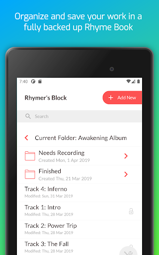 Download Rhymer’s Block today and become the envy of your creative friends who are still carrying around notebooks to create the words for their rap, poem, or song!