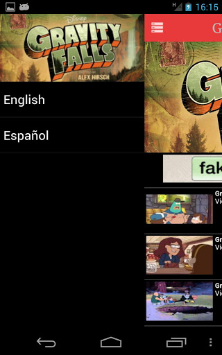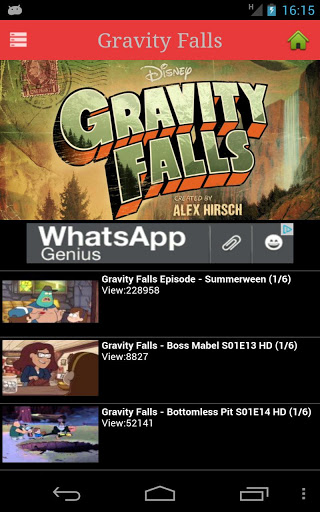 Gravity Falls is an American animated television series created by Alex Hirsch,[2] former writer for The Marvelous Misadventures of Flapjack and Fish Hooks. The first episode aired as a preview on June 15, 2012 and the series officially debuted on June 29, 2012. The series is rated TV-Y7. On March 12, 2013, Gravity Falls was renewed for a second season at the Disney upfornt along with: ANT Farm (season three), Austin & ally (season three), and Good Luck Charlie (season 4).With this application you can see all the videos of Gravity Falls on youtube We have not uploaded any videos to Youtube, I just ordered for a quick search Enjoy all the videos in two languages: spanish and english