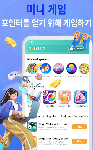 또한 현금 인출을 위한 다양한 채널을 제공하여 보다 편리한 인출 프로세스를 제공합니다. 저희 앱을 사용하여 실제 현금을 빨리 벌 수 있도록 도와주세요. 가입하시면 신규 이민자를 위한 독점 혜택이 기다리고 있습니다.