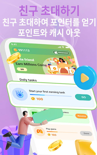 친구와 앱을 공유하고 함께 현금을 벌도록 초대할 수 있습니다. 초대에 성공하면 풍부한 보상을 받을 수 있습니다.