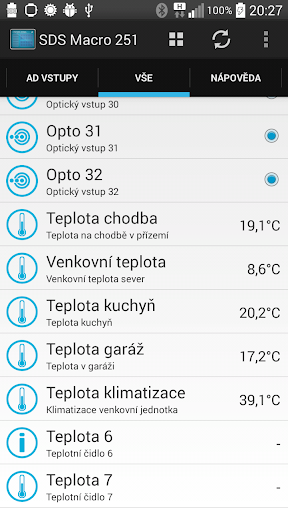 Aplikace je kompatibilní se všemi moduly řady SDS. Čte aktuální stav modulu a zobrazuje data na jednotlivých stránkách. Umožňuje také ovládat výstupy SDS modulů. Aplikace umožňuje celkové přizpůsobení vstupů a výstupů. Aplikace může obsahovat libovolný počet připojených SDS modulů.