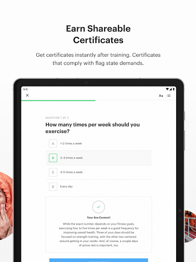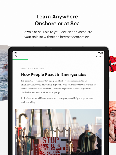 - 어디서나 배우십시오 : 육상 또는 바다.장치에 코스를 다운로드하고 인터넷 연결없이 교육을 완료하십시오.