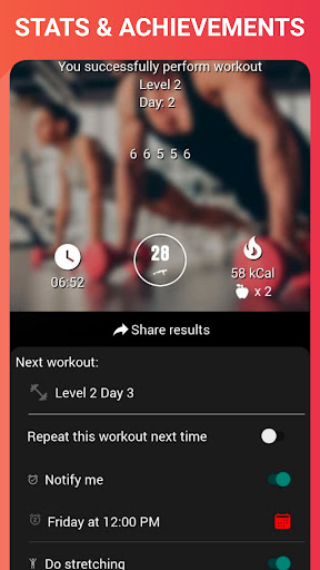 100 푸시 업 응용 프로그램에는 다음 기능이 포함되어 있습니다.