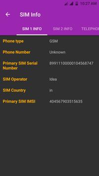 This Device Info app shows the most accurate information about your device. It shows information about both SIM Cards separately if you have a dual SIM Phone. You can now know your android device better with the “SIM Card