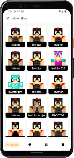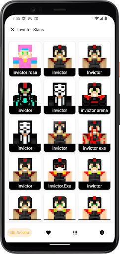 Minecraft HD의 Invictor 스킨 -이 응용 프로그램은 물론 최고의 품질과 멋진 주제를 가진 수백 또는 수천 개의 Invictor Minecraft 스킨을 포함합니다.
