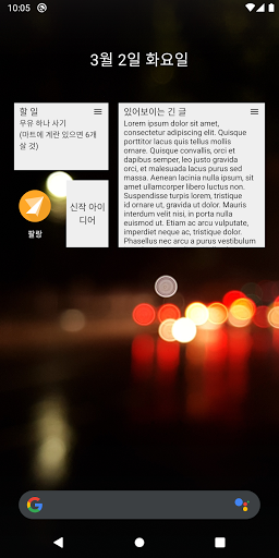 팔랑이 제공하는 위젯을 홈 화면에 추가하여 메모를 빠르게 확인하거나 열어볼 수 있습니다.