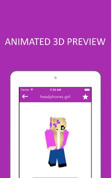 Now with Animated 3D Girl Skins for Minecraft PE, you can change your skin to one of the cool girl skins anytime you want. Choose from hundreds of the coolest hand-picked girl skins. This app does not contain thousands of meaningless skins, but rather it contains the best, hand-picked skins for you to quickly go over and choose what is best for you.