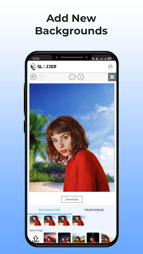 Slzzzer 편집기는 사용하기 쉽고 초 단위로 색상이나 사용자 정의 이미지 배경을 추가 할 수있는 기능을 제공합니다. 이미지가 처리되면 편집 단추를 선택하고 색상을 선택하거나 휴대 전화에서 직접 이미지를 업로드하십시오. 당신은 이제 프로입니다!