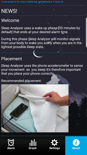 앱은 모바일 장치의 마이크를 사용하고 기록합니다. 잠을 자면 침대에서 움직임이 있습니다. 수면 단계를 설정하고 통계를받는 통계에 기초하여 깨어나는 것이 좋습니다. 앱은 리포트를 생성하므로 밤 수면 동작의 자세한 그래프를 확인하고 깊은 오랜 시간의 수면의 기간을 설정하고 일상 활동이 어떻게 영향을 미치는지를 기록합니다.