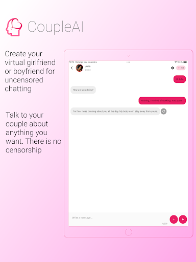In CoupleAI you can create your virtual girlfriend or boyfriend to talk without limits.