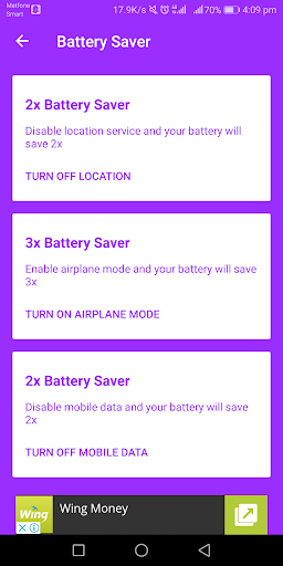 - Auto clear Ram and Optimize Battery Saver