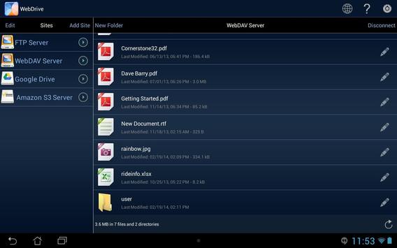 WebDrive is the ultimate file access productivity tool. Connect to your Amazon S3, Google Drive, or other cloud service, and connect securely to your corporate file servers. Have business files at your fingertips from WebDAV, SFTP, FTP and even SharePoint servers.