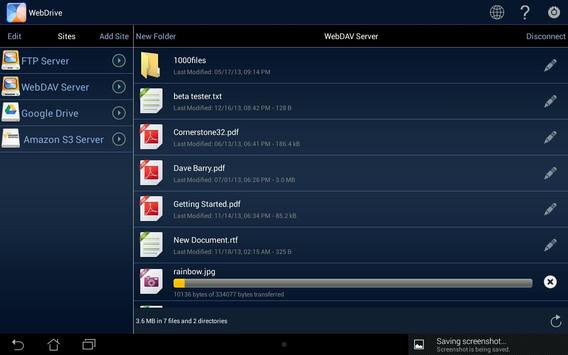 *** Please note that unlike WebDrive on Windows or Macintosh, this version of WebDrive for Android does not yet support the direct editing of documents on your server. We are currently working on this feature and editing will be provided as a free upgrade to existing WebDrive for Android customers.
