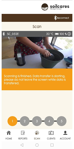 The SoilCares On-Site Manager application connects with the AgroCares Scanner and provides a Soil Status report. This report includes the level of total nitrogen (N), total phosphorus (P), and exchangeable potassium (K) in the soil, as well as pH level, organic carbon, soil temperature and cation exchange capacity. The results are always crop specific.