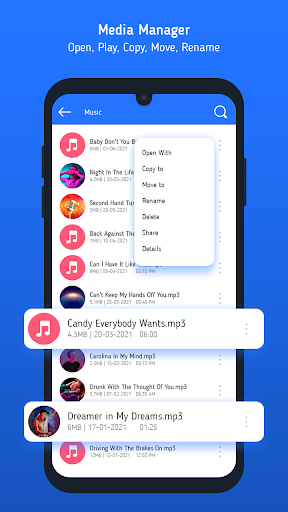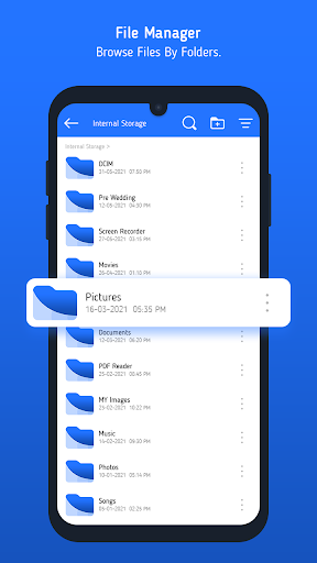 로컬 파일 관리자는 내부 및 외부 저장소 (SD 카드)에서 파일을 관리합니다. 숨겨진 파일을 포함한 모든 파일 및 폴더를 보여줍니다. 미디어 관리자는 열기, 이동, 이름 바꾸기, 삭제, 삭제, 즐겨 찾는 파일 유형과 같은 작업에 대한 다중 선택을 지원합니다. 모든 파일 지원되는 파일 탐색기 (이미지, 비디오, 오디오, PDF, TXT, DOC, PPT, Excel, Word).