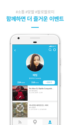 주말에 뭐하지, 누구랑 놀지 고민될 때 컴업을 켜세요! 축제, 파티, 공연, 클럽 파티, 소모임 등 즐겁고 이색적인 이벤트 정보를 쉽게 찾을 수 있습니다. 파티플래너, DJ, VJ, 클럽 매니저, 공연 기획자, 뮤지션 등 다양한 이벤트 호스트와 언더그라운드, 인디 문화, 서브컬쳐에서 벌어지는 이색적인 이벤트 소식을 공유하고, 무료 게스트 초대 & 티켓 할인 혜택도 누리세요. 특별하게만 느껴지던 축제, 파티, 공연이 당신의 일상이 됩니다!