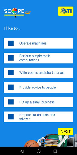 The SCOPE Lite is the compact version of the STI Student Career Opportunities and Personality Evaluator (SCOPE) where you can take a peek at your exciting career options.