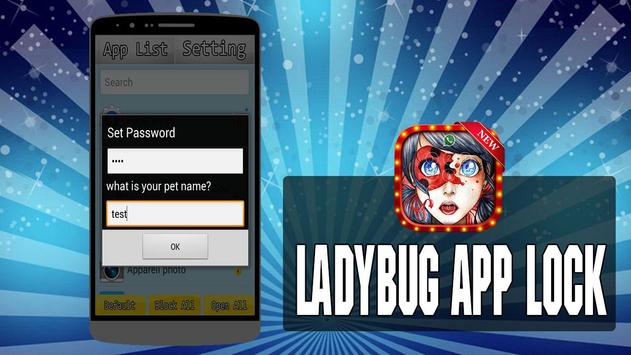 Ladybug App Lock Easy to use pass code security to securing your apps. Secret AppLock - App Protector can lock your gallery, contact, call, e-mail, SMS, photo or any app in your android phone or tablet.
