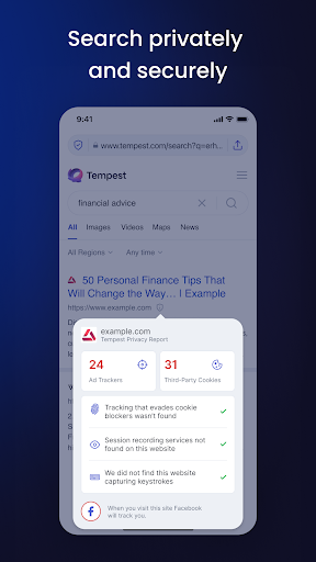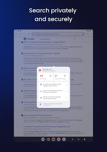 Tempest는 빠르고 안전하며 개인 브라우저로 개인 데이터를 온라인으로 제어 할 수 있습니다.Tempest를 사용하면 인터넷을 탐색 할 때 추적, 프로파일 링, 지문 또는 대상 광고가 뒤 따릅니다.