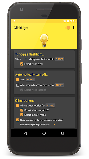 ClickLight provides the fastest way to turn on your device's bright LED flashlight. There's no need to unlock the phone, open an app, or find a widget.