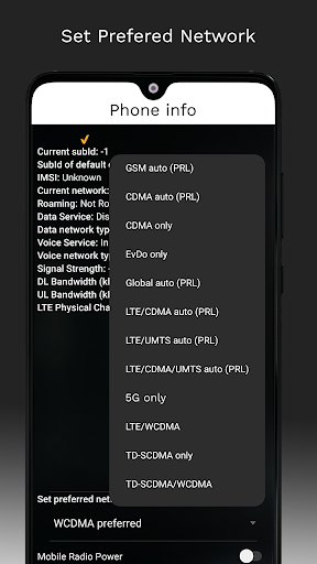 Force 5G는 네트워크를 5G/4G/3G로 변경하는 데 도움이됩니다.고급 네트워크 구성을 선택할 수있는 비밀 메뉴를 열 수 있습니다.5G 기능은 5G 하드웨어가있는 전화 만 지원합니다.