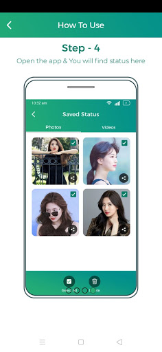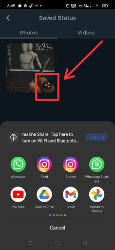 WhatsApp 상태를 공유하거나 다시 게시하십시오. 상태를 저장 한 후 홈 화면에서 저장된 상태로 이동하십시오. 공유하거나 재 게시 할 상태를 선택하십시오.