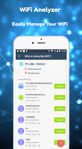 앱은 내 WiFi에있는 사람을 탐지하는 강력한 WiFi 보호 장치입니다. WiFi Analyzer - WiFi Scanner 앱은 WiFi 보안을 보호하기 위해 이상한 장치를 차단하는 데 도움이 될 수 있습니다.