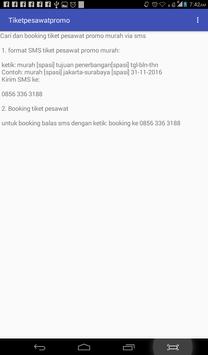pesan tiket pesawat promo adalah aplikasi android gratis yang berisi informasi cara pesan tiket pesawat promo atau tiket pesawat murah dengan menggunakan sms sehingga dapat digunakan walaupun tanpa koneksi internet dan anda tetap bisa membeli tiket pesawat garuda, air asia, lion air, batik air, susi air, trigana air dan lainnya sesuai dengan kebutuhan penerbangan yang akan dilakukan.