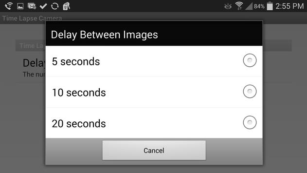 Time Lapse Camera takes a video in time lapse mode. You can change the frame rate to a number of values. Go to the Android Gallery to view the videos you create.