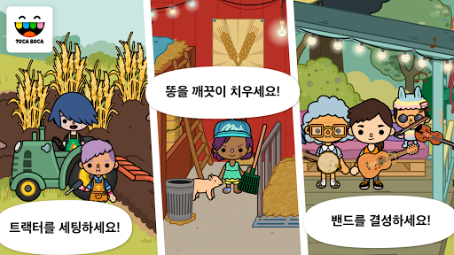농부가 되어 일하고 놀아보자! 젖소에서 우유를 짜고, 닭장에서 달걀을 모으고 농작물을 키우세요. 소풍을 가고, 현악기를 연주하기도 하고, 짚단을 패기도 하고요! 하루 종일 Toca Life: Farm에는 농장의 재미가 가득합니다!