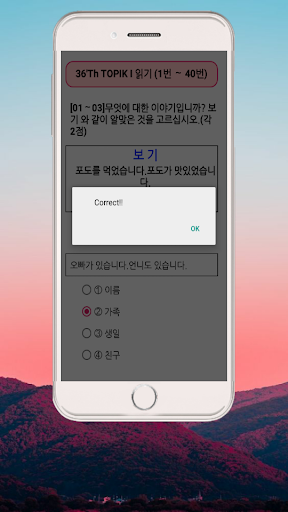 안녕하세요 사용자 이것은 한국어 언어 Topik 레벨 테스트 앱이 앱에서 과거 시험 종이 질문을 쉽게 테스트 할 수 있습니다.Topik I (초보자 수준) 및 Topik II (중간 알 고급 레벨)를 테스트 할 수 있습니다.오프라인 앱입니다. 오프라인 상태라도 질문을 테스트 할 수 있습니다.