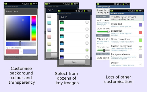 ● 배경색과 투명도를 사용자 정의하기 ● 수십 개의 키 이미지에서 선택 ● 키 텍스트 색상 사용자 정의 및섀도우 효과 적용