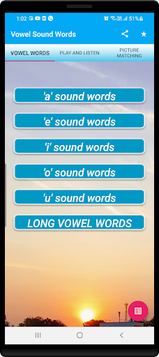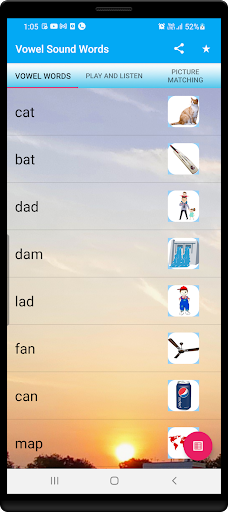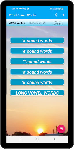 *이 앱은 오프라인 앱입니다.유치원 학생 인 아이들.그들은이 앱으로 100 개의 모음 단어를 매우 빠르게 배울 수 있습니다.