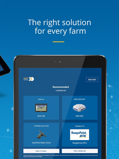 The FAST app - Flexible Agriculture Solution by Trimble - is a 10 question product recommendation tool.Each question will help the system recommend the best solution for you from our lineup of guidance displays, GNSS receivers, steering solutions and RTX correction services.