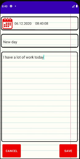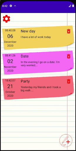 In this application you can: 1) Keep a diary, write down your thoughts and memories 2) Set a password for the diary 3) Customize the background and color of the elements