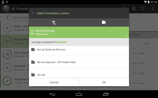 Torrent를 추가 할 때 파일 다운로드 위치를 선택하십시오. BR>로
