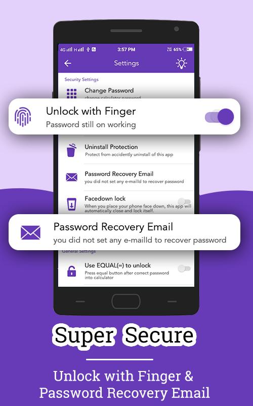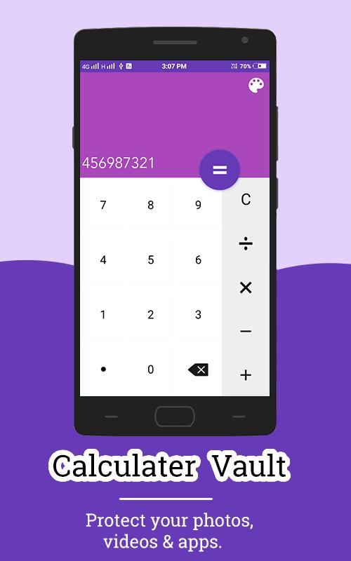 Photo Locker Calculator App can Secretly Hide Video,Pictures & AppLock without anyone Notice because it looks as Just a Regular Calculator.Your Files Will be Secretly Stored in Vault & Can only be Viewed After a Numeric PIN is Entered on Calculator Panel of This App.