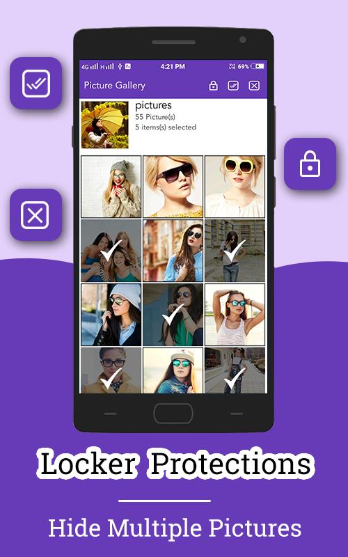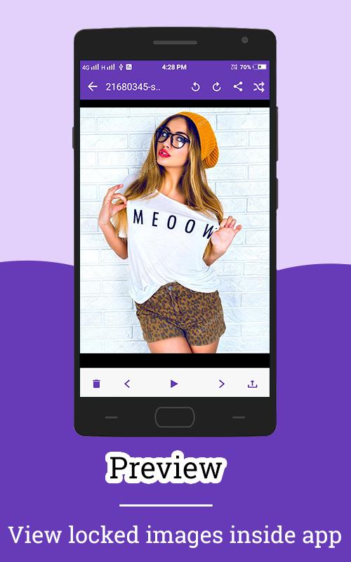 Photo Locker App You will need to Hide Your Private Image on Your Device.Very easy to Use & Maintain Your Privacy,Photo Locker Protects Your Personal Picture & Prevents them From Coming in Your Gallery.With a Password based access no one else who uses your device can Accidentally see your Private Picture.
