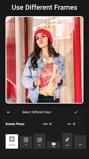 이 앱으로 만든 비디오는 1:1, 16:9, 9:16과 같은 여러 종횡비를 지원합니다.