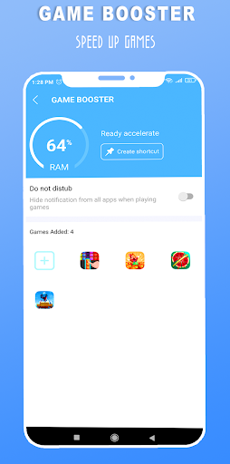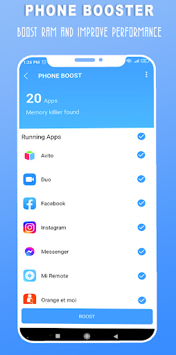 ! - 부스터에 한 번의 클릭으로는 RAM과 깨끗한 배경 작업을 확보 할 수 있습니다. 결과적으로 휴대 전화가 더 빨리 실행되도록합니다.