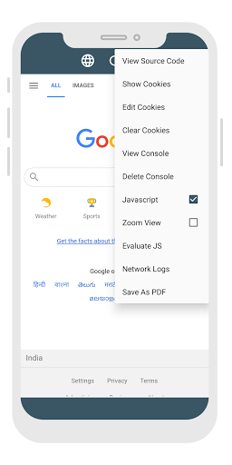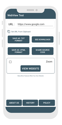 WebView : Javascript Management, Cookie Management, View Console Log, View HTML JS(Javascript) CSS, View & Save Source Code, Save WebPage As PDF And Much More.