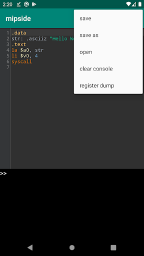이제까지 휴대 전화에 MIPS 조립품을 작성하고 싶습니까?아마 그렇지 않을거야.우리는 MIPS32에 대한 편집기 및 시뮬레이터가있는 안드로이드 앱을 구현하므로 쓸 이유가 있습니다.MIPS-IDE