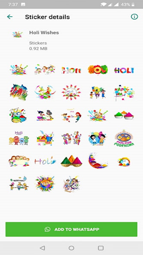 Most unique Holis Sticker for Holi festival on whatsapp.Holi wishes stickers could be shared with friends and relatives. Holi wishes and greetings could be sent by stickers through whatsapp.