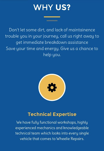 In any case, Just fire up the Wheelie Repairs app on your phone and request a service from our skilled and highly professional mechanics.