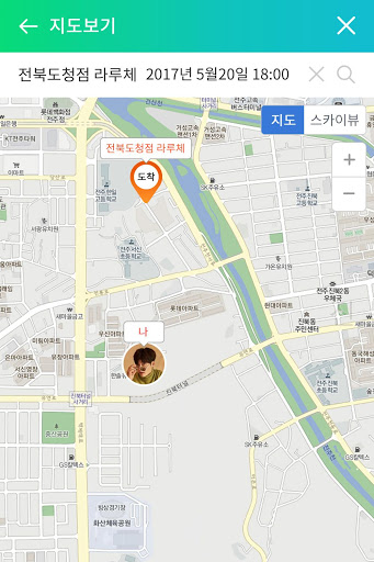 어디야 회원이 위치 기능을 작동시킨 상태라면, 해당 친구의 정확한 위치가 지도에 표시됩니다.