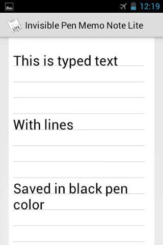 Invisible Pen Memo Note Lite is a fun and useful app. It allows you to take notes discretely with invisible pen. It gives you privacy while taking notes. No one will see what you type, hand-write or scribble. Only you can view your notes once you save your Memo and notes.