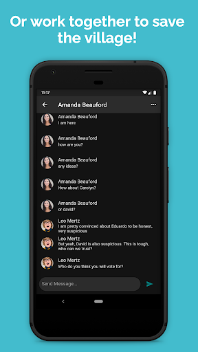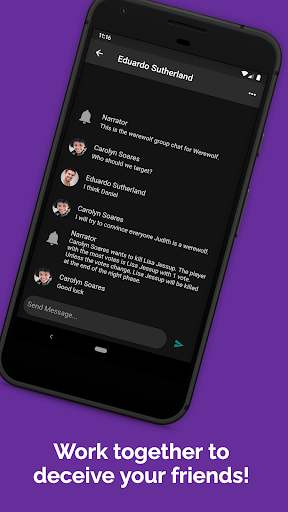 그룹 채팅 만들기 : 앱의 모든 친구와 채팅하고 서로를 돕고 늑대 인간이며 게임의 마을 사람들은 누구인지를 돕습니다. 또는 단순히 친구들과 어울리고 무슨 일이 일어나고 있는지 따라 잡으십시오. 늑대 인간이고 누가 마을지인지, 친구들과의 대화에 대한 모든 이야기는 결코 다시는 동일하지 않을 것입니다! 일주일에 음모와 지하철을 펼치고 통보를 사용하여 무슨 일이 일어나는지 알려줍니다. 당신은 다시 친구를 다시 믿을 수 있습니까? 게임 자체는 모든 사람들이 늑대 인간이라고 생각하는 사람이 늑대 인간이고, 늑대 인간이 게임에서 제거하기 위해 마을지를 선택하는 밤 단계로 찬사하는 일 단계로 나뉘어져 있습니다. 늑대 인간의 목표는 아마도와 하위 주민을 선택하여 게임에서 제거하기 위해 야간 단계에서 마을 주민을 선택하고 마을 사람들이 일상에서 다른 마을 사람들에게 투표하기 위해 설득력있는 마을 사람들을 하나씩 꺼내는 것입니다. 마을 사람들은 어떤 플레이어가 어떤 플레이어가 잘하지 않고 게임의 일상 단계에서 투표해야합니다. 마을 사람들은 그들 자신이 꺼내기 전에 늑대 인간을 꺼내야합니다.